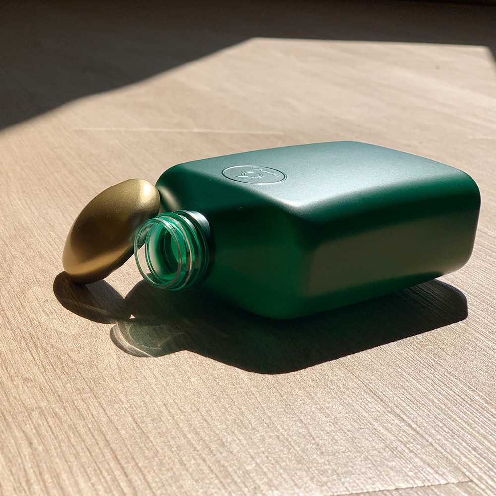 Πράσινο τετραγωνικό μπουκάλι πηκτωμάτων ντους σαμπουάν με μια μοναδική σχεδιασμένη κεφαλή κοχλίου, μια καλή ποιότητα, μια υψηλές συμπίεση και μια προστασία του περιβάλλοντος.