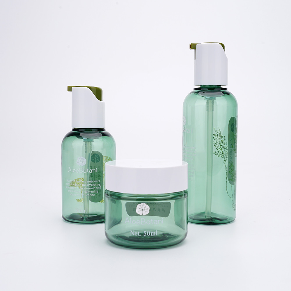 Προϊόντα φροντίδας δέρματος που συσκευάζουν τα μπουκάλια που μπορούν να χρησιμοποιηθούν για τη συσκευασία των κρεμών, της κρέμας ματιών, του λοσιόν, του γάλακτος σωμάτων, του του προσώπου μέσου καθαρισμού κ.λπ. Πολυ-τύπος και πολλών χρήσεων, για να ικανοποιήσουν τις διαφορετικές ανάγκες ταξιδιού. Αντλία λοσιόν, εύκολη να πιέσει, ομοιόμορφη παραγωγή, κανένας παφλασμός. Εξοπλισμένος με μια αριστερή και δεξιά κλειδαριά για να αποτρέψει αποτελεσματικά τη διαρροή.