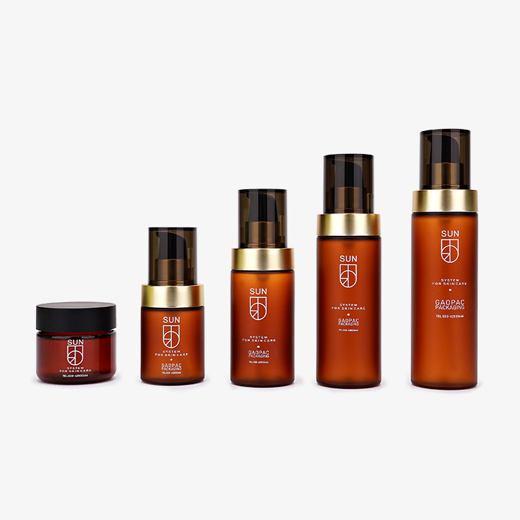 Προϊόντα φροντίδας δέρματος καθορισμένα, ηλέκτρινος κυλινδρικός. Εύκολος να φέρει, μη εύκολος στην παραμόρφωση, ανθεκτική. Στόμα μπουκαλιών Spirical, εύκολο να χύσει. Φιλικά προς το περιβάλλον υλικά που υποστηρίζουν την ανακύκλωση