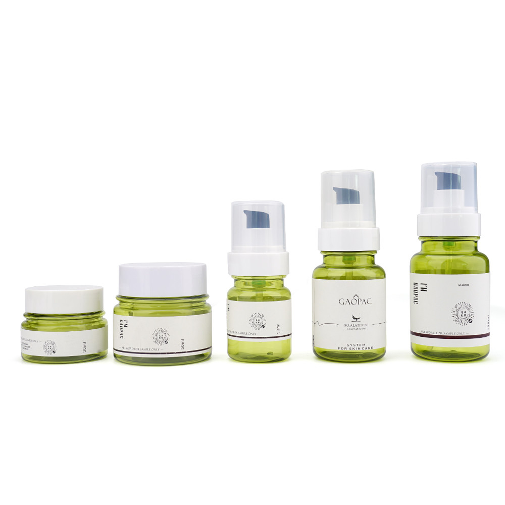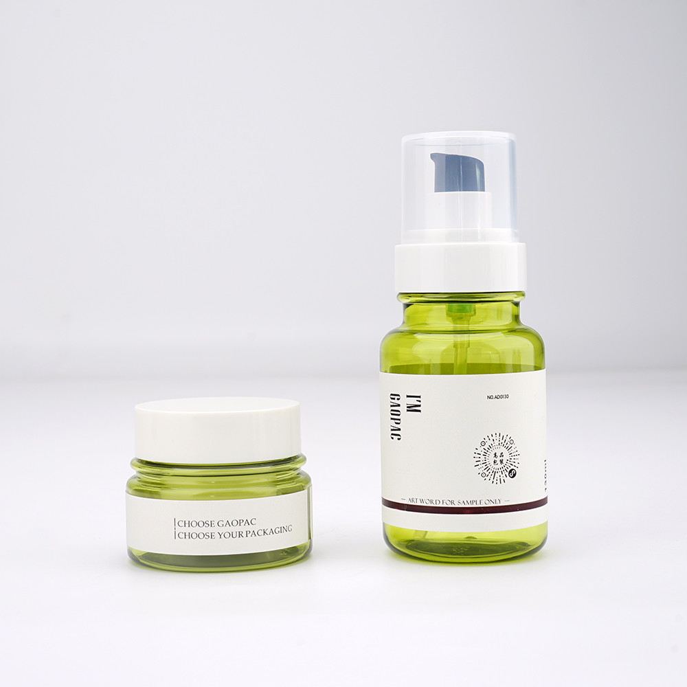Πράσινο κενό μπουκάλι συσκευασίας φροντίδας δέρματος, πολυ-προδιαγραφές για να ικανοποιήσει τις διαφορετικές ανάγκες ταξιδιού. Στοματικό σχέδιο μπουκαλιών βιδών για την εύκολη αντίστροφη έκχυση. Φιλικό προς το περιβάλλον υλικό, το οποίο μπορεί να ανακυκλωθεί. Μικρός και ελαφρύς, και εύκολος να φέρει.