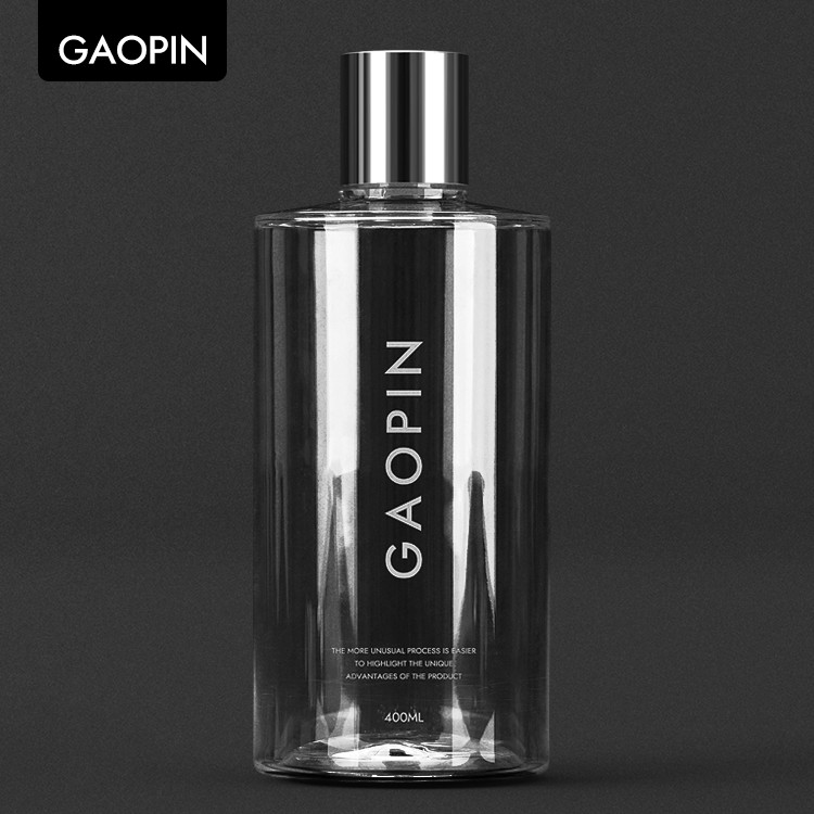 Διαφανές κυλινδρικός-διαμορφωμένο μπουκάλι σαμπουάν, υλική, μαλακή αφή της PET.